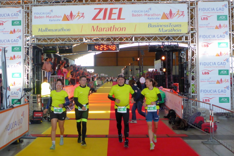 Der 35. Fiducia & GAD Baden-Marathon scheint in mehrfacher Hinsicht bundesweit einzigartig: da wären zunächst einmal die rund 100 Tanzgruppen, Tanzvereine und Tanzschulen mit ca. 1500 Aktiven, welche die Läufer entlang des Rundkurses mit talentierten Acts einheizen. Und dann die vielen, kostenfreien Leistungen. Unter anderem ein Finisher-Video, welches sich aus einzelnen Video-Clips aller überschrittenen Zeitmess-Matten zusammensetzt. Gratis-Bilder. Oder eine Portion Maultaschen mit Kartoffelsalat – alles geschenkt! Aber es geht ja noch weiter: Wenn wir Laufsüchtigen ab 9 Uhr an der Messe von der Leine gelassen werden und nach dem Rundkurs wieder zurückkehren, dann werden wir bei einem Indoor-Zieleinlauf auf gelb-rotem Teppich in Halle 2 königlich empfangen.