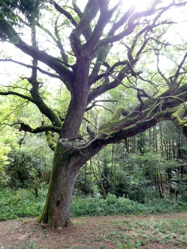 Unterhalb der Eiche ist ein römisches Quellheiligtum. Die Quelle fliesst noch, die römische Einfassung ist auch noch da, allerdings überwuchert und ich tanze schon Schuhplattler wegen den Dingern mit den großen Augen. Der Brunnen heisst Messerbrunnen, wurde schon ursprünglich von den Kelten eingefasst. „Messer“ kommt von lat. Messis, und bedeutet „Ernte“. Demnach ist ein Messi ein Ernteeinbringer! Die Ernte liegt im Heimatmuseum von Birkenfeld: Hunderte von Münzen (100 n. Chr. bis zur Neuzeit).