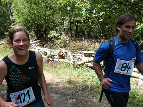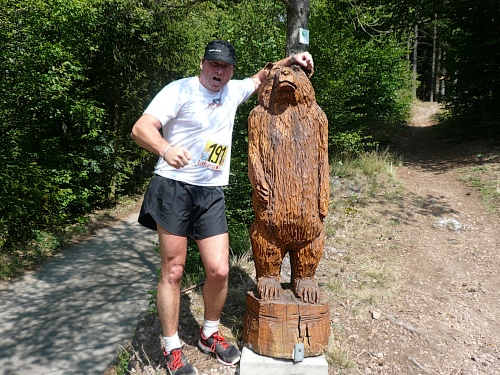 Jiiip! Der Ultraläufer in mir wird wach. Der Körper gibt auf und ich kann frei laufen. Die dritte Runde macht mir richtig Gaudi. Ich habe so viel Spaß und fetze den Bärenfels hinauf. Ich freue mich, dass die Familie Feller liebevoll 17 bis 100 Baumstämme bei km 10 über den Trail gelegt hat, springe hinüber und klatsche 17 bis 300 Bremsen tot.