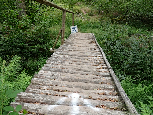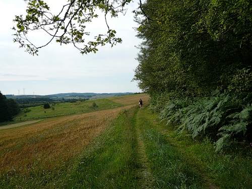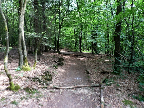 Bei km 9 oder so entdecke ich drei keltische Hügelgräber (750 v Chr.) Sie wurden schon frühzeitig geplündert, doch Ausgrabungen von 1844 brachten noch Hals-und Fingerringe aus Bronze und Gold, blaues Glas, Urnen und Bronzefibeln ans Tageslicht. Zu sehen im Heimatmuseum Birkenfeld.