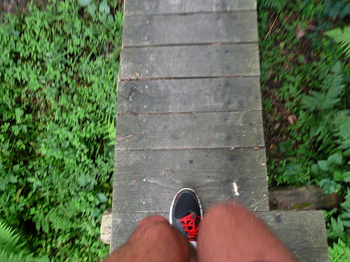 Viele Leute fragen mich, was man so denkt, wenn man so lange läuft. Nun, ich denke mir eine Drahtkonstruktion aus, die während meines Laufes ca. 20 getragene Socken in einer Art Maginot Linie um meinen Astralkörper halten kann. Und ich zähle die fetten Bremsen, die ich mit meiner klatschnassen Mütze erschlage.