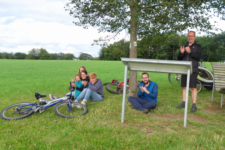 Auf Asphalt nähern wir uns dem Luhkapellchen. Auch hier werden wir angefeuert. Kurz darauf verlassen wir das kurze Stück Asphalt. Nur noch 2 Km. Vorbei am Modellflugplatz laufen wir abwärts.