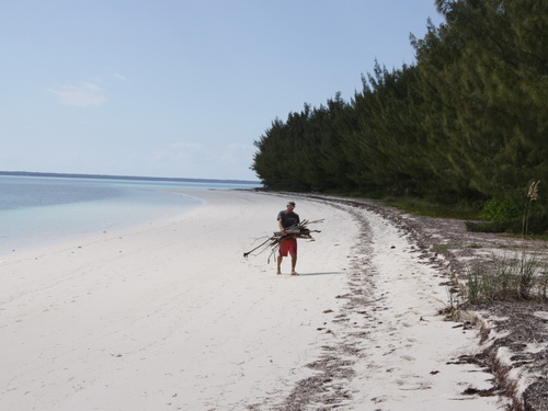 Zum Essen fahren wir auf eine unbewohnte kleine Insel mit schneeweißem Strand und einem Urwald aus Pinien, Palmen und bunt blühenden Sträuchern. Es gibt eine kleine Anlegestelle, eine Feuerstelle und ein paar Holzbänke und –tische. Brendal’s Helfer schwärmen sofort aus, um Holz zu sammeln, er bereitet den Lobster vor und Salate, die er aus der Kajüte zaubert. Vom Boot her hört man dezent Caribian Music, die sich mit dem Rauschen des Meeres vermischt. Wäre das jetzt ein Film, ich würde mich abwenden. Zu unwirklich, zu kitschig. Ein Traum.
