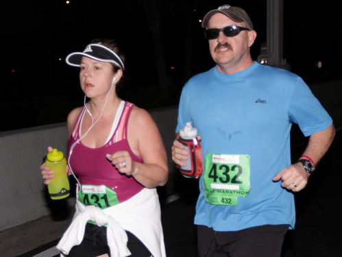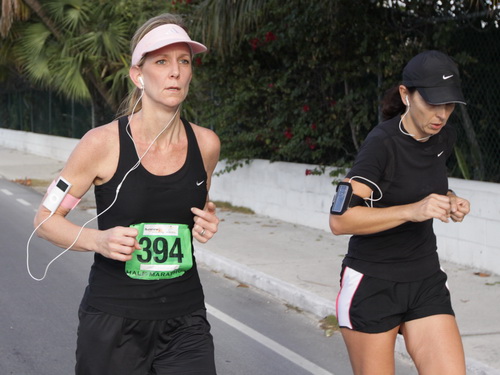 Weil ich mein Tempo einigermaßen gleichmäßig durchziehe, kann ich etliche Läuferinnen und Läufer einholen. “You are my rabbit”. Schon hängt mir ein hübsches Mädel an den Fersen. Lange hält sie nicht durch. Wortlos lässt sie mich sausen. Überhaupt - erst hinterher ist mir aufgefallen, dass der Frauenanteil erstaunlich hoch ist: über 1/3 beim Marathon und beim Halben ist es sogar fifty-fifty.