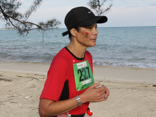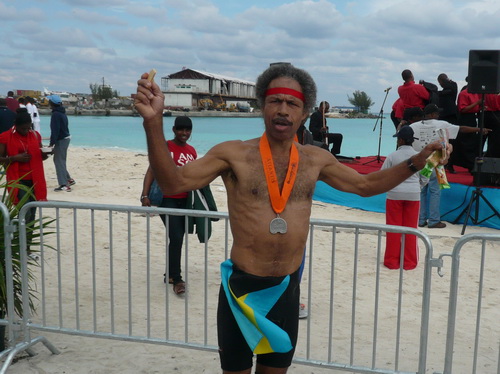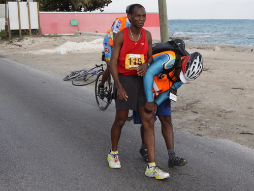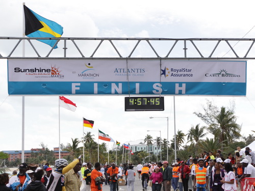 Erwähnenswert ist ausnahmsweise auch mein Ergebnis. 89 Minuten nach dem Sieger komme ich ins Ziel. Schneller ist heute kein Deutscher. Sollte doch einer unter der Bahamian Flag gestartet und vor mir platziert sein, möge er sich melden. Ich trete ihm den Titel dann ab.