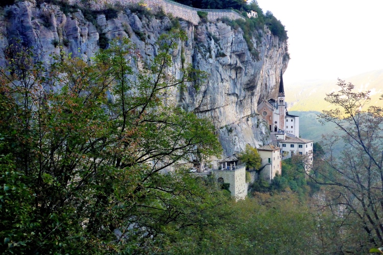 Der Samstag weckt uns mit Sonnenschein. Heute steht Sightseeing auf dem Programm. Wir schlendern über die Strandpromenade und genießen die sommerlichen Temperaturen. Am Nachmittag fahren wir zum Start nach Caprino Veronese, was übersetzt passenderweise „Veronesische Ziege“ bedeutet und schon mal erahnen lässt, um was es morgen geht. Die Startnummern gibt es im benachbarten Affi. Zuerst besuchen wir aber die Felsenkirche Madonna della Corona im Nachbarort Spiazzi. Ein steiler Spazierweg führt hinunter zu dem Sakralbau, der förmlich an der Felswand zu kleben scheint. Ich überlege, ob ich sicherheitshalber eine Kerze für den morgigen Tag anzünden soll, aber Training ist ja bekanntermaßen für Anfänger und 46 Kilometer sollten gehen.