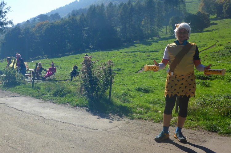 Alle 10 Kilometer gibt es eine Verpflegung, außerdem bei Kilometer 25 nach dem Monsteranstieg. Das kann ich mir gut merken für die Renneinteilung, zur Not habe ich mir die Strecke auch auf die Uhr geladen und das Höhenprofil mit den Verpflegungspunkten steht praktischer Weise auf der Startnummer. Ich muss heute nur ins Ziel kommen, um bester Deutscher zu werden. Aus dem Ausland hat es außer mir noch einen Rumänen und einen Portugiesen hierher verschlagen. Ansonsten nur Locals. Die Läuferinnen und Läufer um mich herum sehen alle so aus, als ob sie das Ding hier sonst mal kurz vor dem Frühstück laufen. Alle sind sehr entspannt. Man kennt sich und freut sich auf das gemeinsame Abenteuer.