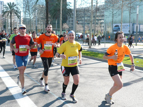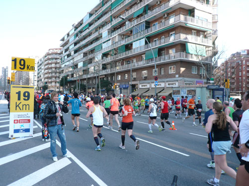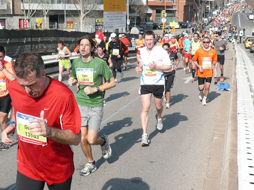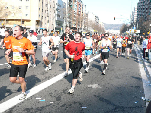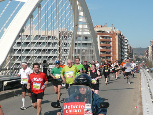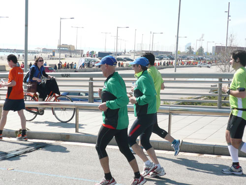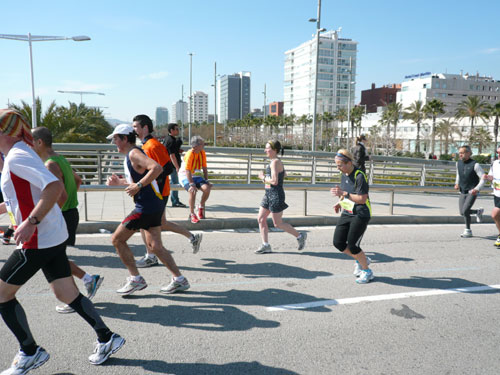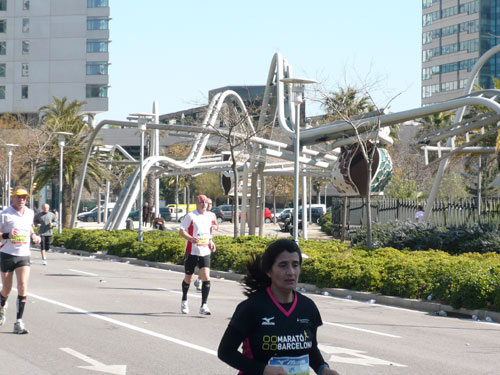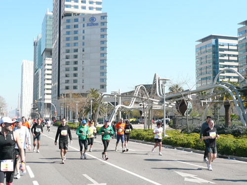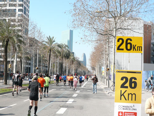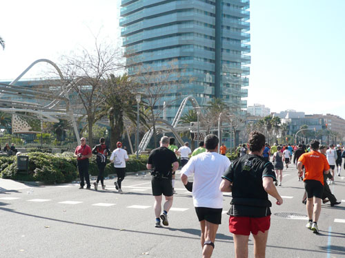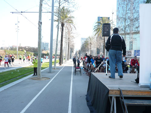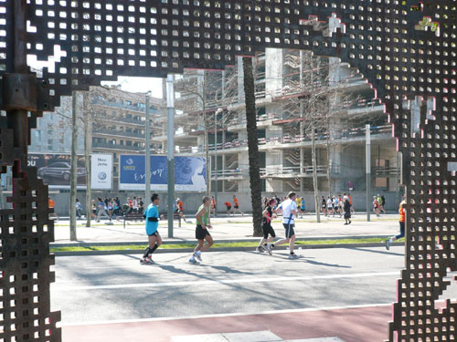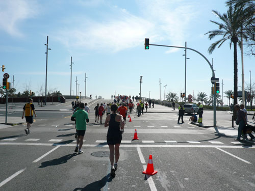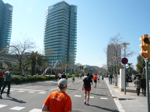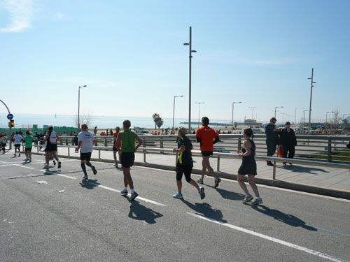 Nach 31 km ist es endlich soweit, wir haben freien Blick auf das „Mar Mediterráneo“. Über 5 km führt unser Kurs an der Uferpromende und am Port Olímpic entlang. Obwohl wir, sowohl architektonisch als auch anfeuerungsmäßig schon überaus verwöhnt sind, entwickelt sich dieser Abschnitt am Meer entlang heute zu meinem absoluten Lieblingsstück. Ich steigere mich in eine absolute Hochstimmung.