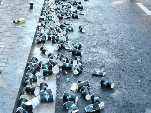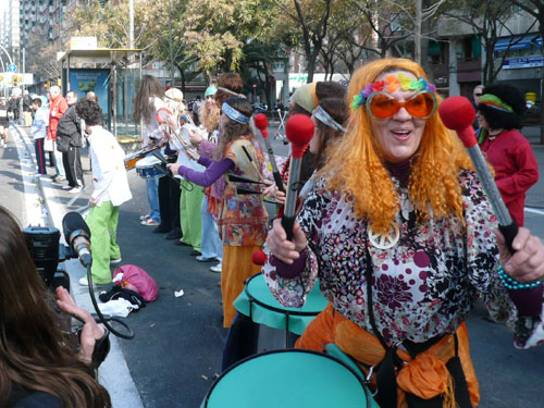 Wie ihr Name schon sagt, durchschneidet die mehrspurige Avinguda Diagonale komplett die Stadt von West nach Ost. Wir folgen ihrem Weg bis zum Plaça de les Glòries Catalanes. Auf 2,5 km hat man heute auch eine der wichtigen Durchgangsstraße Barcelonas abschnittsweise vom Verkehr befreit. Mittendrin benötige ich dringend eine Pause, mein Akku ist leer. Nein, nicht mein körperlicher, sondern der meiner Kamera. Ich bin heute aus fotografischer Sicht in Hochform, aber in weiser Voraussicht führe ich ja immer zwei Energiequellen bei mir.