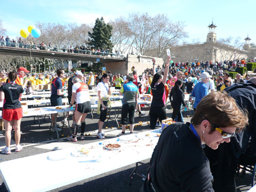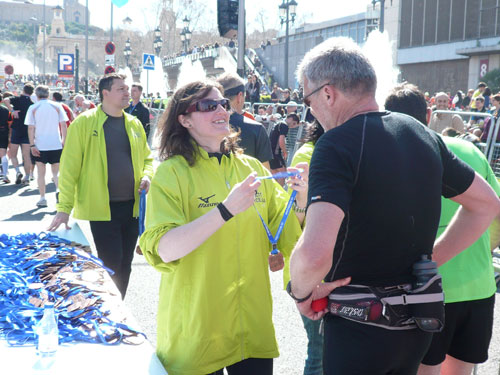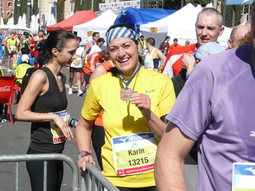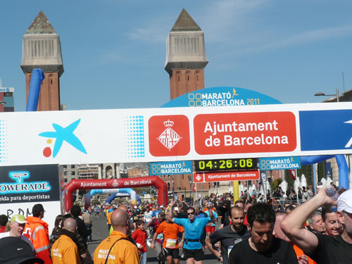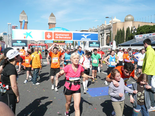 Leider bin ich jetzt im Ziel, einer meiner schönsten City-Marathons ist zu Ende. Barcelona grandiosa – Danke, großartiges Barcelona, das gilt für die Stadt, die Veranstaltung, die Menschen und dem Wetter … einfach für alles. Mich würde nicht wundern, wenn die Teilnehmerzahlen in den nächsten Jahren noch weiter rapide ansteigen. Die Laufstrecke bietet fast alles, was Barcelona an Sehenswürdigkeiten im Angebot hat, dazu einen atemberaubenden Start- und Zielbereich. Auch Zuschauer sind entgegen sonstigen südländischen Gewohnheiten zahlreich an der Strecke. Dazu kommt noch das herrliche Wetter. Nächstes Jahr wird der Lauf zwei Wochen später gestartet, das sollte fast eine Schönwettergarantie sein. Ich kann allen nur empfehlen: nix wie hin!