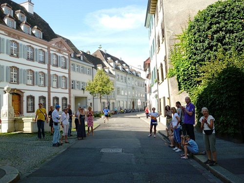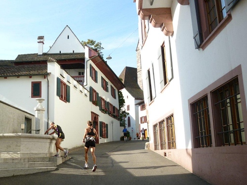 Spalenberg, Heuberg und Gemsberg (ohne Anpassung an die neue Rechtschreibung) heißen die Straßen, die von alten Häusern gesäumt werden und ein so anderes Bild einer Großstadt abgeben. Am Kohlenberg spürt man auch etwas von Berg. Am Anfang der Gefällstrecke hinunter zum Barfüßerplatz und zur Steinenvorstadt gibt es wieder Verpflegung.