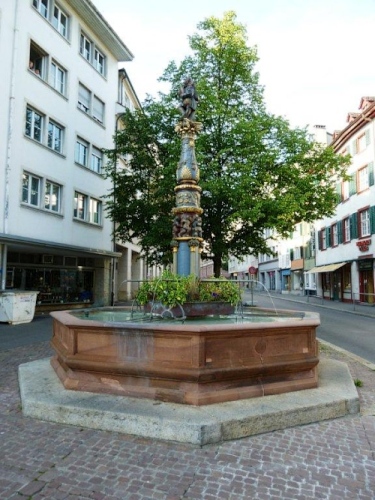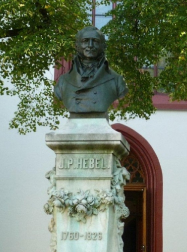 Wie schön, dass ich den kurzen heftigen Anstieg zum Totentanz verhältnismäßig fidel und quicklebendig laufen kann. Kurz darauf könnte man eine Bergpreiswertung ausloben. Für die Mühen der Steigung an der der Petersgasse wird man aber mit einer wunderschönen Kulisse belohnt. Krönender Abschluss dieses Teils der Altstadt ist der sich am Ende des Berges erhebende Turm der Peterskirche. Vor der Kirche, dem ruhigen beschaulichen Petersplatz zugewandt, wo alljährlich während der traditionellen Basler Herbstmesse der „Hääfelimärt“ sein Zuhause hat, steht das Denkmal für Johann Peter Hebel. Der Meister der literarischen Kleinform, einer der Wegbereiter der modernen Kurzgeschichte, wurde im Alter von drei Tagen in dieser Kirche getauft. Auch literarisch nicht so bewanderte Basler bedienen sich immer wieder eines seines Textes, wenn sie die Hymne des (Halb-)Kantons Basel singen: „Z’Basel an mim Rhi“.