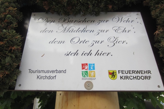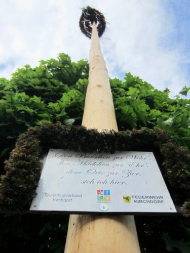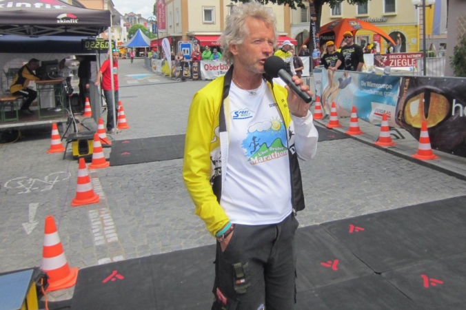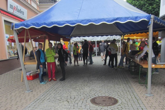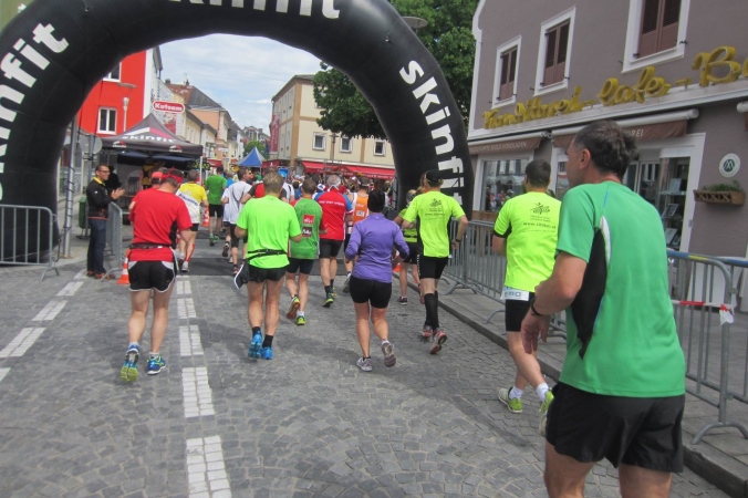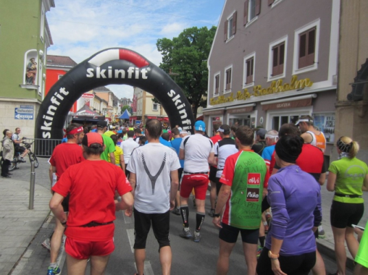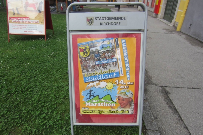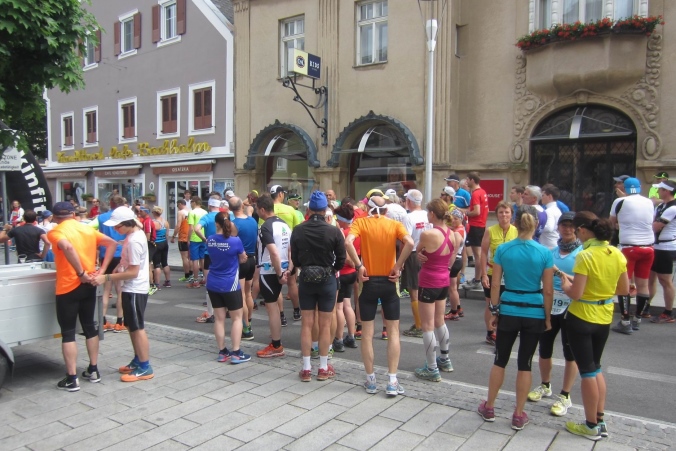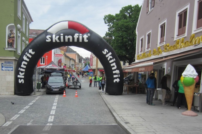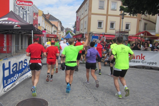 Das Wetter ist gut, es ist trocken. In der Nacht hat es aber stark geregnet, hat man mir bei der Anmeldung erzählt. Um 9 Uhr morgens sind noch kaum Läufer im Start- und Zielbereich anzutreffen. Die Ultraläufer sind um 8 Uhr 30 gestartet und haben 3 Runden vor sich. Für die Halb- und Marathonläufer geht es erst um 11 Uhr los. Ich spaziere zum nahen Bäcker. Ein großer Maibaum ziert den Hauptplatz, eine angenagelte Tafel mit der Aufschrift „Den Burschen zur Wehr, den Mädchen zu Ehr, dem Orte zur Zier, stehe ich hier“ erläutert dem touristischen Besucher der rund 4000 Einwohner zählenden Stadtgemeinde im oberösterreichischen Traunviertel die Bedeutung dieser Tradition.