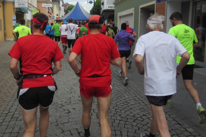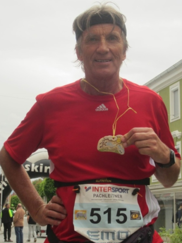 Hans Hufnagel erwähnt, dass heuer erstmals auch ein 89-Jähriger den Halbmarathon geschafft habe – mit 3:06:24 wird Walter Retschitzegger, Jahrgang 1926, souveräner Erster unter M-80. Der schnellste 70-Jährige schafft die Halbdistanz in 2:02:22. Josef Schwarzer sieht aus wie ein Mittfünfziger, denke ich mir bei der Siegerehrung, würde man uns beide nebeneinanderstellen, würde er bei der Damenwahl gewinnen.