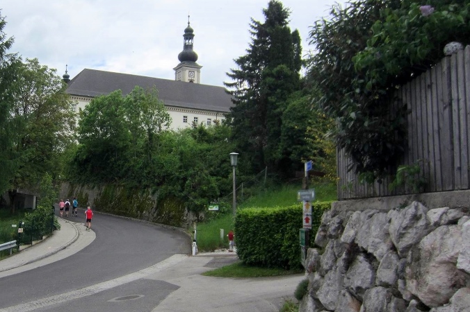 Nach ca. 4 Kilometer erreichen wir oder besser ich alleine, denn zwischen den Läufern vor und hinter mir liegen einige Hundert Meter Abstand, die Ortschaft Schlierbach mit dem gleichnamigen Zisterzienserstift. Hier ist auch ein Bildungszentrum mit einem Stiftsgymnasium untergebracht, das als katholische Privatschule geführt wird. Zum Stift gehört eine bedeutende Bibliothek, eine Glaswerkstätte und eine Klosterkäserei. Als Ort des Glaubens bemüht sich die klösterliche Gemeinschaft im Stift Schlierbach, suchenden Menschen Wege und Impulse zur Lebensgestaltung aufzuzeigen.