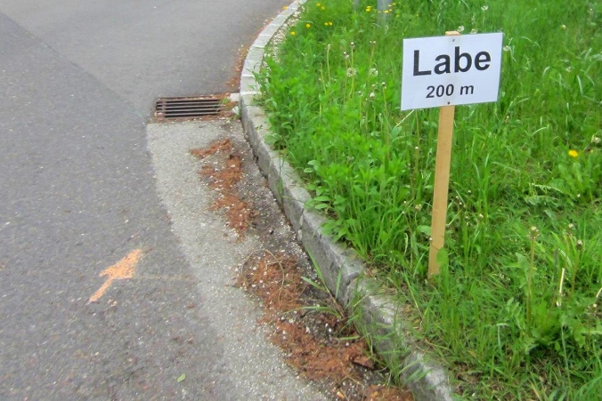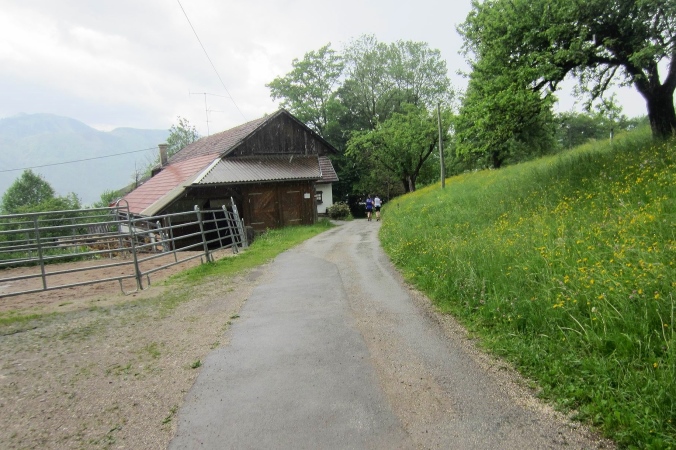 Bis zum nächsten Kontrollpunkt liegt noch ein guter Kilometer vor mir. Ich setzte mich vom Linzer ab und liege einige Hundert Meter voran, als ich nach links abbiege und vom Kurs abkomme. Ein Bauer vor einem Kuhstall erklärt mir, dass ich zurücklaufen muss. Hätte ich genau auf den Boden gesehen, hätte ich den etwas verwitterten in rosa Farbe auf dem Asphalt aufgemalten Pfeil bemerken müssen. So aber muss ich mich bemühen, den „step behind“ wieder gut zu machen und zu dem Mann aus Linz mit der Startnummer 704 erneut aufzuschließen.