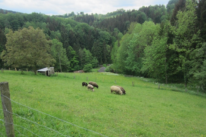 Unterwegs auf den letzten Kilometern bis ins Ziel kommen mir Spaziergänger entgegen, die die Frische in der Natur nach dem Regen sichtlich genießen. Bei einer Scheune sitzt eine junge Frau mit ihrem kleinem Sohn. Ich kann mir vorstellen, dass sie auf den Papa warten, der schon bald mit seinem Paragleiter durch die Lüfte schweben und ihnen ein Juhu zurufen wird.