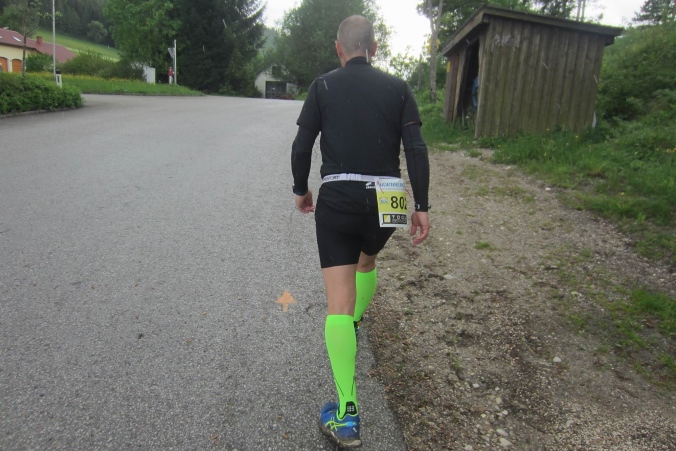 Als ich am Vortag die Wettervorschau für Kirchdorf an der Krems, im oberösterreichischen Voralpenland gelegen, im Web aufrufe, sind in der Region bis 14 Uhr Schauer angesagt. Bei meinem letzten Antritt voriges Jahr hatten wir ebenfalls Dauerregen, der insbesondere die Trailpassagen auf dem 2-Rundenkurs mit ca. 1300 Höhenmeter erschwerte. Was also tun? Ich stelle den Wecker auf 5 Uhr 30 und mache meine Entscheidung vom Wiener Wetter am frühen Morgen abhängig.
