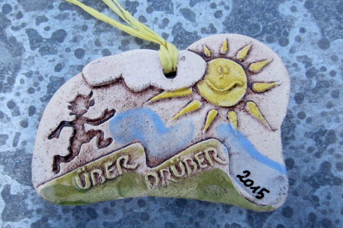 Das Ziel passiere ich nach 5:32:40 Stunden, ein Mädchen hängt mir ein Tonmedaille mit dem Logo des Über Drüber Marathon um. Im Klassement werde ich Dritter (von Dreien) in der Altersgruppe M-60. Als ich im Ziel- und Labebereich Gusto auf ein Bier habe, ist der Ausschank längst vorbei, man ist dabei, zusammen zu räumen. An den Kuchen denke ich nicht mehr, die Tische sind leer.