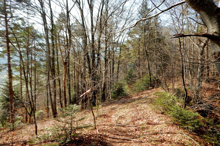 Trotzdem bemerke ich, dass der Untergrund nach und nach feuchter wird, teilweise auch gefroren ist. Die ersten letzten Schneereste breiten sich vor mir aus. Auch die Uhr, die ich entgegen meinen Gewohnheiten heute am Handgelenk habe, halte ich im Blick, denn ich mache mir keine Illusionen. Es ist nicht die Distanz, welche zu weit sein würde, es ist Zeit, welche mir zu deren Bewältigung zur Verfügung steht, die mich ausbremsen könnte. Kommt dazu, dass heute nicht nur die Beinmuskulatur gefragt ist. Mir wird in Form eines stechenden Schmerzes in der linken Schulter bewusst, dass ich seit Urzeiten nicht mehr mit Stöcken unterwegs war und auch dies geübt sein will.