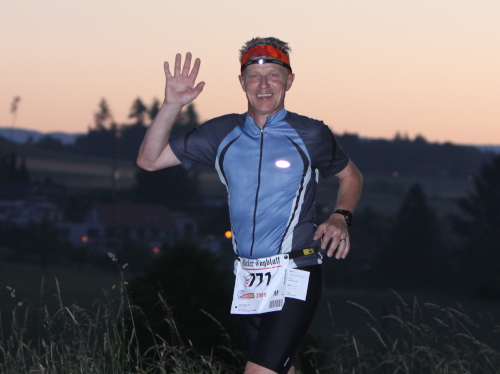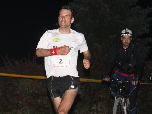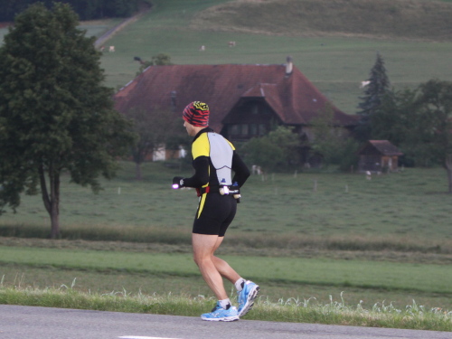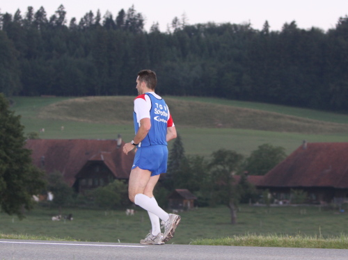 Debi’s Vorsprung beträgt bald eine halbe Stunde. Wenn nichts passiert, wird sie ihren ersten 100er gleich als Siegerin beenden. Und was soll schon passieren? Man kennt es doch, solche Geschichten gehen immer gut aus. Debi gewinnt, erreicht nach 8:34.51,1 Stunden als erste Frau das Ziel in Biel. Ein Traum – und Schweizer Meisterin ist sie damit obendrein. Als sie auf’s oberste Treppchen steigt und der Schweizer Hymne lauscht, ist der andere Held des Tages längst auf dem Heimweg. Er radelt zurück nach Kirchberg, hat am Ende seines Ausfluges über 200 km in den Beinen und fällt „todmüde, aber mit der Gewissheit, etwas Gutes getan zu haben“ ins Bett. „Es freut mich sehr, dass ich beim Erfolg von Debi ein kleiner Mosaikstein sein durfte“, so sein Kommentar.