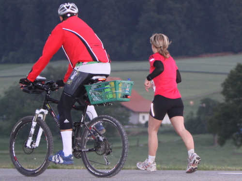 Von Kirchberg (km 55) aus hat er es nicht mehr weit nach Hause. Hier wollte er seine Radtour ursprünglich beenden. Aber mittlerweile sind er und Debi ein gutes Team. „Ich weiß doch, wie wichtig es ist, jemand an der Seite zu haben, der einem gut zuredet und so hilft, ins Ziel zu kommen“, erkennt Bruno und weicht seinem Schützling auch in der Folge nicht von der Seite.