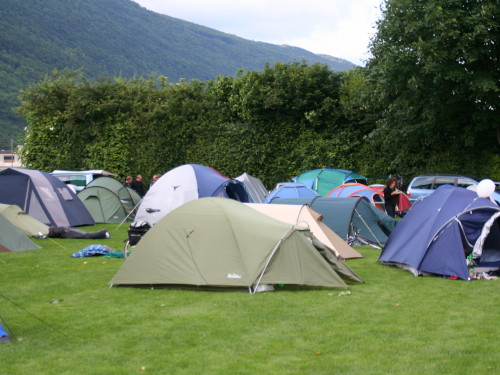 Entsprechend sieht es auf dem Gelände rund um die Eissporthalle aus. Schon am frühen Nachmittag ist fast alles zugeparkt. Auf den ausgewiesen Flächen steht Zelt an Zelt, Wohnwagen an Wohnwagen und bei der Startnummernausgabe und vor den Nudeltöpfen kommt es zu erheblichen Wartezeiten.