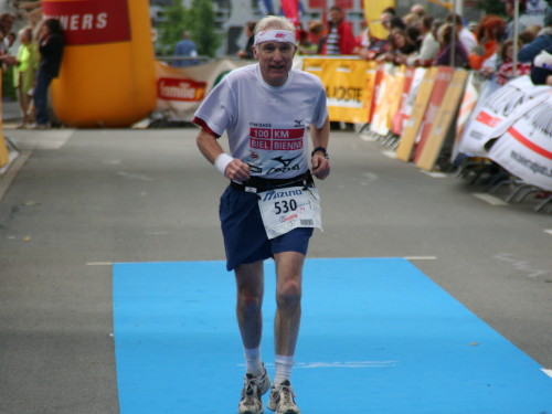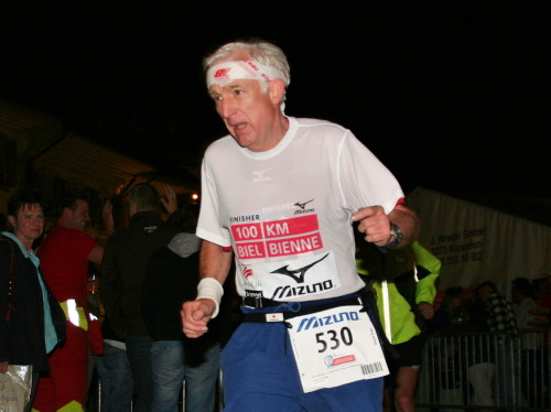 Kein Debütant, eher schon ein alter Hase ist Joey Kelly. Seine Zeit: 9:42! Kein Promi, kein Rekordler aber dennoch eine Erwähnung wert: Karlheinz Kobus läuft zum 26. Mal in Biel ins Ziel. Als 16jähriger feierte er sein Debüt und ist seither ununterbrochen dabei. Ihm und allen anderen, die diesen phantastischen Lauf erfolgreich beendet haben, gratuliere ich herzlich. Ganz besonders aber Werner Sonntag. Zum 33. Mal kommt er ins Ziel, mit 82 Jahren diesmal als ältester Teilnehmer. Nach 19:49 Stunden ist er noch lange nicht letzter. Ich ziehe zum zigten Male den Hut vor diesem Mann und frage mich: „Wann setzt man ihm in Biel ein Denkmal?