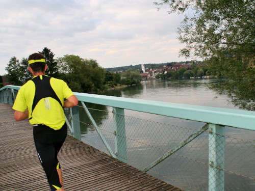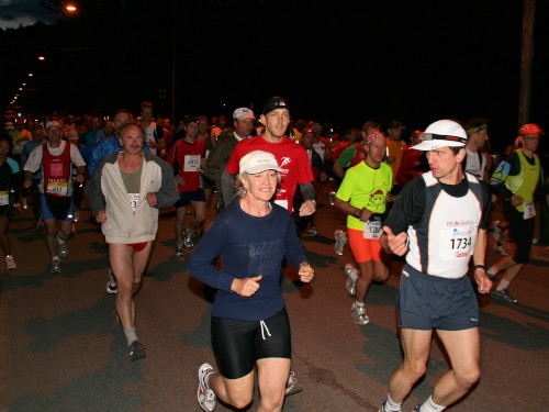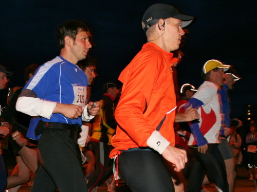 Einerseits ist es eine tolle Sache, als Läufer einen Coach zur Seite zu haben, vor allem in der Nacht. Andererseits, wenn so viele davon Gebrauch machen wie hier in Biel, wird es für die Läufer teilweise schwierig. Vielleicht sollte man die Fahrradbegleiter erst ab Oberramsern zulassen. Dann sind die Marathonläufer von der Strecke und das Feld hat sich mehr auseinander gezogen.