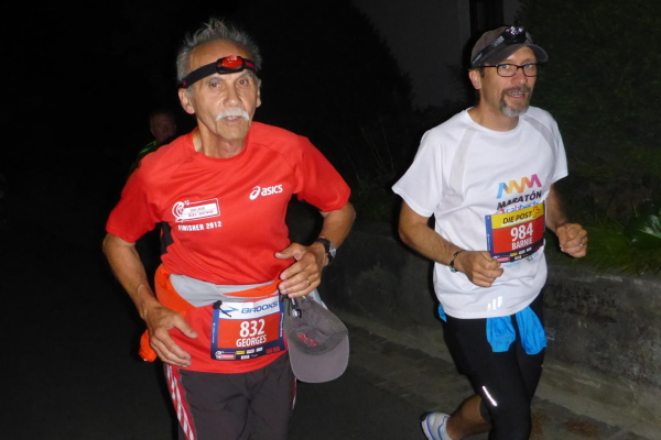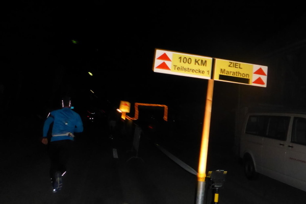 Einerseits bin ich froh, ihn zu sehen. Andererseits hoffe ich, er fragt nicht, wie es mir geht. Seit einiger Zeit fühlt sich mein Magen nicht optimal an. Außerdem ist mir zu warm und meine Beine sind ungewöhnlich müde. So kann ich die 100 km nicht zu Ende laufen. Insgeheim beschließe ich auf jeden Fall, den Marathon voll zu machen und dann zur Not auszusteigen. Norbert kennt mich gut genug, um mich nicht mit Fragen zu bedrängen. Er erzählt von seinen Erlebnissen und so kann ich etwas entspannen.