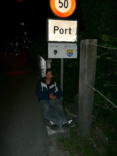 Hinter Aarberg führt der Weg in die Finsternis, der angekündigte einsame Kampf mit der Strecke beginnt. Alles vorher war wohl eher Vorgeplänkel gewesen. Km 20 erreichen wir nach 2:07 Std und setzen gut gelaunt unseren Weg fort. Eberhard fällt mir ein, der seinen frühen Einbruch bei km 20 beschreibt und daß es nach 30 km plötzlich wieder ging. Von Müdigkeit oder gar Einbruch ist derweil noch nichts zu spüren. O je, ist der Weg noch lang! Gut ist aber mit Sicherheit, daß ich mir zwar klar mache, daß es insgesamt 100 km sein werden, aber immer nur das nächste Zwischenziel wirklich im Auge habe. Dies ist dann nach 23 km die Ortschaft Lyss.