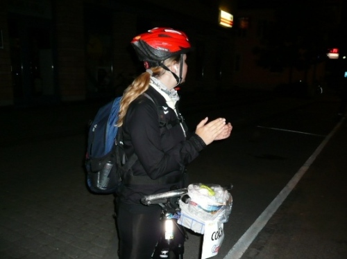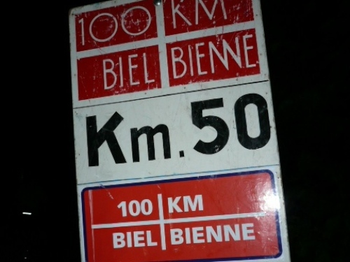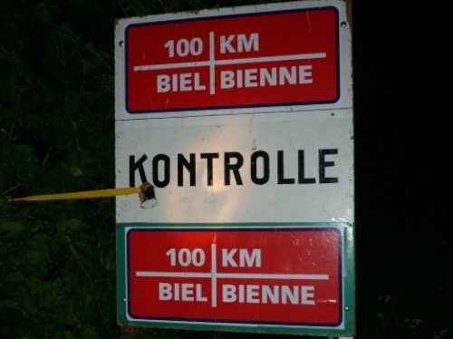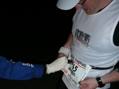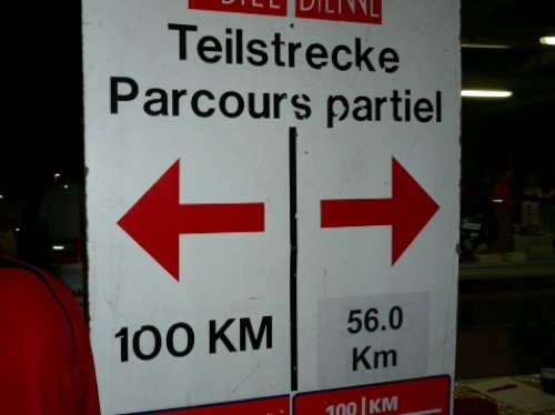 Bei km 50 feiern wir nach 5:40 Std. Bergfest. Wir sind demnach wahnsinnig schnell. Ich kann das gar nicht richtig einordnen, denn noch fühle ich mich wirklich gut und keinesfalls ausgelaugt. Wahrscheinlich verpflege ich auch vernünftig. Ich trinke an jeder Stelle mindestens drei Becher, fast immer ist einer mit Bouillon (Salz!) dabei und esse auch, am liebsten Banane mit Brot, das rutscht gut. Ich wundere mich auch darüber, daß der Magen keine Zicken macht, denn mitten in der Nacht hat der in der Regel auch nichts zu arbeiten.