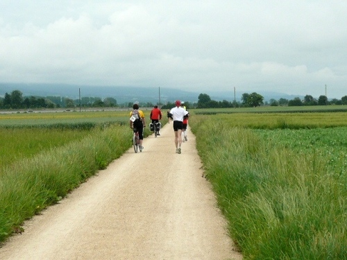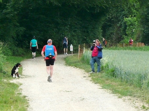 Hinter Büren ist tatsächlich irgendwann einmal km 90 (10:50 Std) erreicht. Interessant ist wiederum, daß ich, wenn ich denn laufe, das noch einigermaßen zügig hinbekomme, denn die 5 km-Zeiten laufen nicht vollkommen aus dem Ruder und die km-Schilder tauchen meist überraschend früh auf, ich hatte mich noch langsamer eingeschätzt. Gut so! Ich setze mich auch nicht hin, wie es einige andere machen. Ich weiß nicht, ob ich wieder hochgekommen wäre. Will nur noch ins Ziel. Bewundere die Radbegleiter, die bei der Schleichfahrt fast vom Rad fallen müssen und dabei mindestens genau so müde sein müssen.