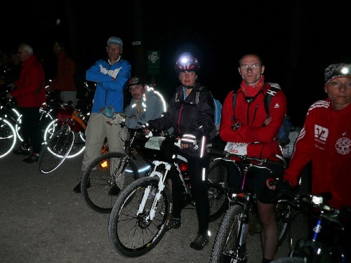 Später werden die Begleitradler umgeleitet, es geht nämlich auf den Emmendamm, der auch mehr oder weniger liebevoll von den Läufern Ho-Tschi-Minh-Pfad genannt wird. Anfangs ist er noch gut belaufbar, doch dann wird es übel. Langes Gras, Wurzeln, grobe Steine, herabhängende Zweige. Nach oben ist das Blätterdach dicht. Ohne Stirnlampe problematisch. Man könnte stolpern, vom Weg abkommen und vielleicht hinunterkugeln. Dann die Gefahr einer Verletzung, vielleicht in Brennnesseln oder im Morast landen. Tempo verlangsamen ist erste Pflicht. Manche Läufer sind jetzt in ein Marschtempo gewechselt. Keine schlechte Idee.