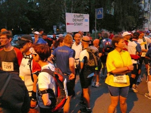 Dann tauche ich unter in der sich langsam zur Startlinie bewegenden Menge. Für einen Moment fühle ich mich in diesen Hundertschaften von Läufern allein. Nicht einsam, aber ich weiß, dass ich in den kommen Stunden auf mich allein gestellt sein werde. Der Rahmen ist durch die Organisation gesetzt, daran kann ich mich klammern, den Rest muss ich allein schaffen.