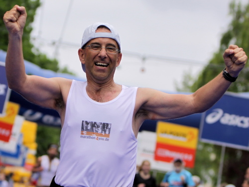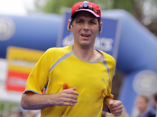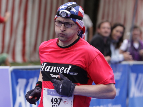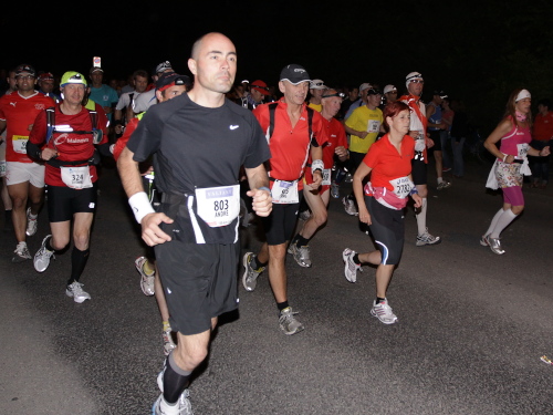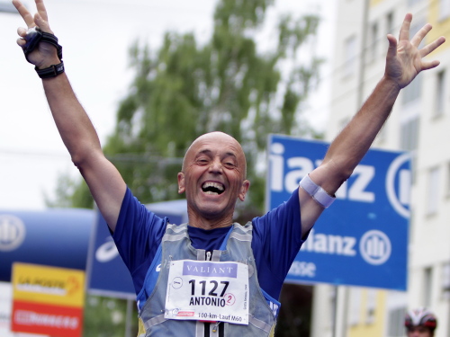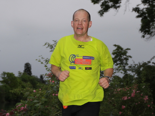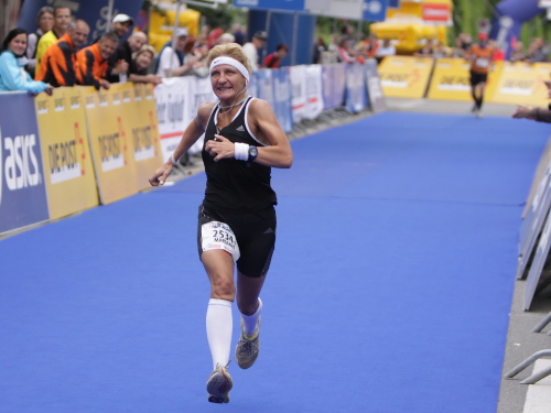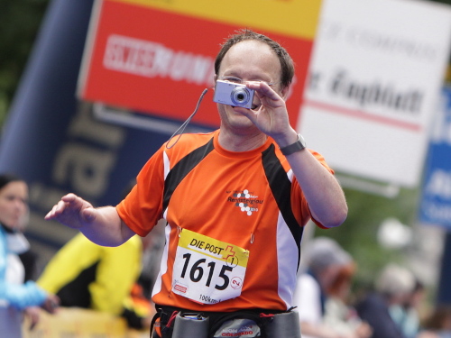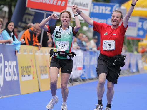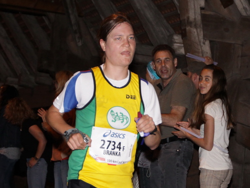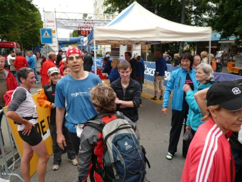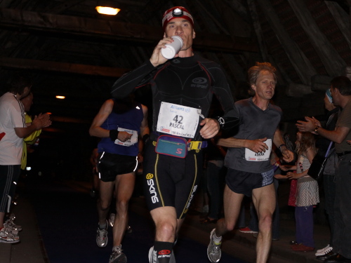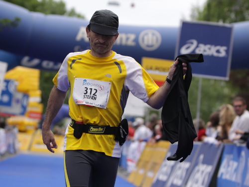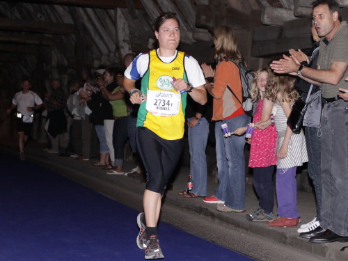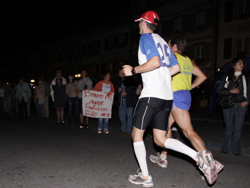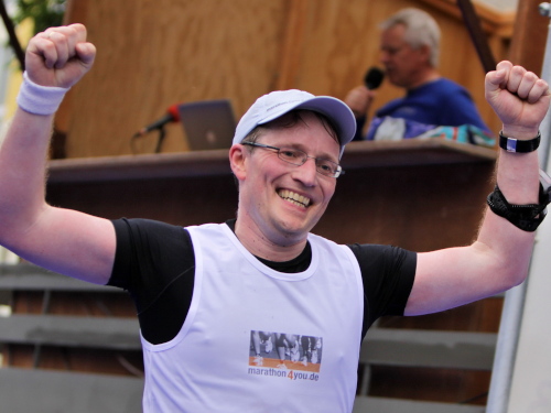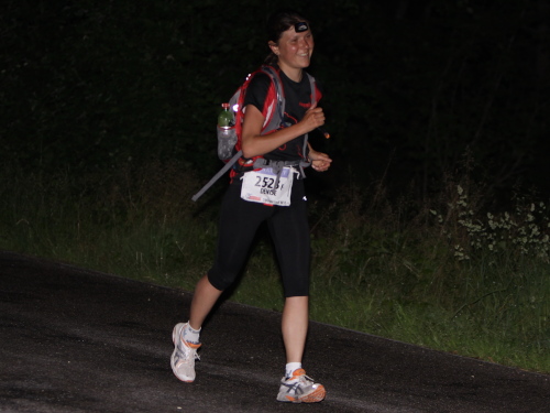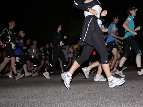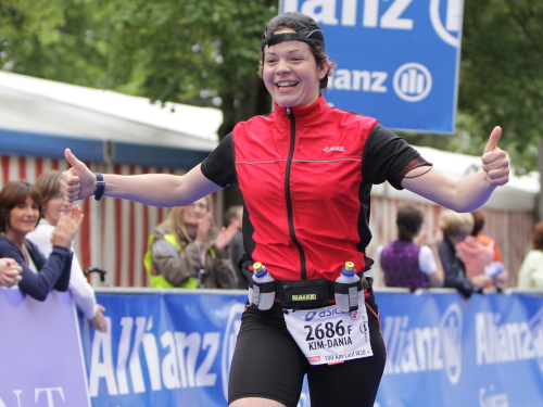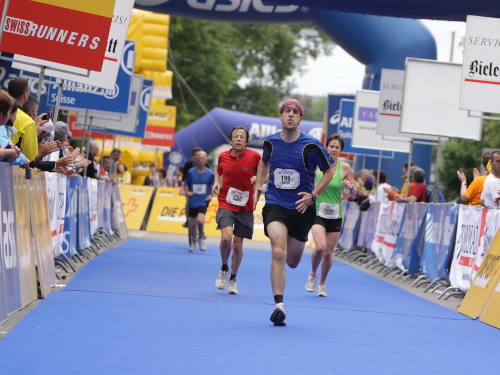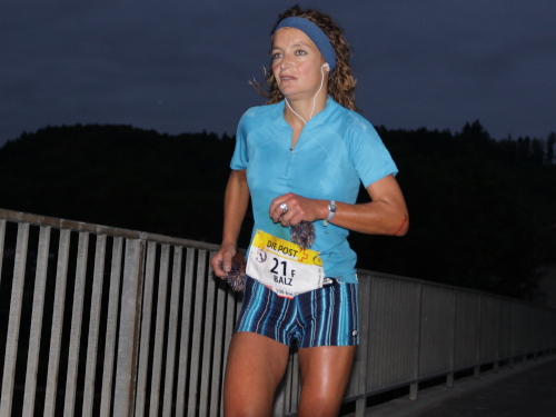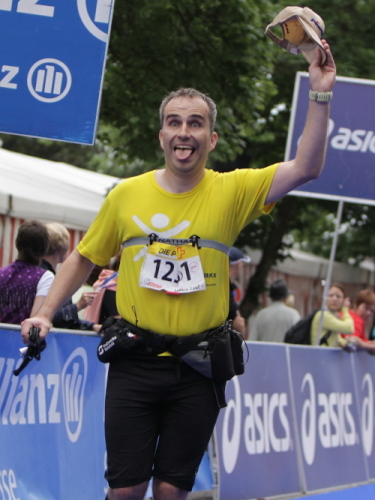 Wir sind nun nur noch eine tiefe dreistellige Meterzahl vom Ziel entfernt, da höre ich, wie Antons Zielankunft verkündet wird. Kurz vor der letzten Kurve vergessen mein Kopf und meine Beine, dass sie sich schon so weit durch die Nacht gekämpft haben. Ich beschleunige, und locker wie ein Knappe die Treppe hoch eilt, um den Ritterschlag zu empfangen, renne ich der Ziellinie entgegen. Anton steht mit der Kamera bereit, um mein Strahlen bildlich zu dokumentieren.
