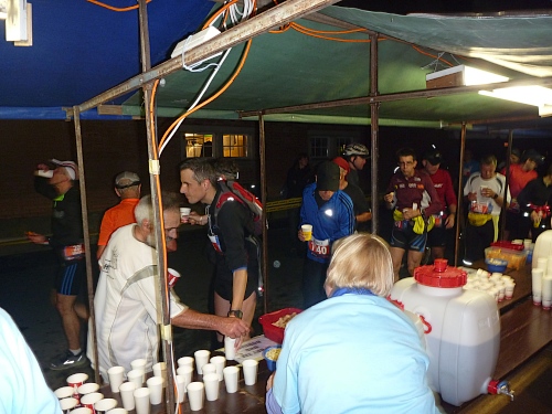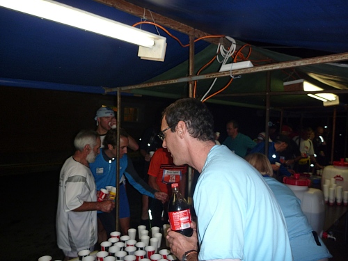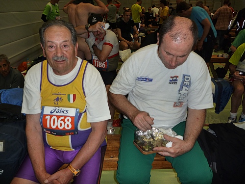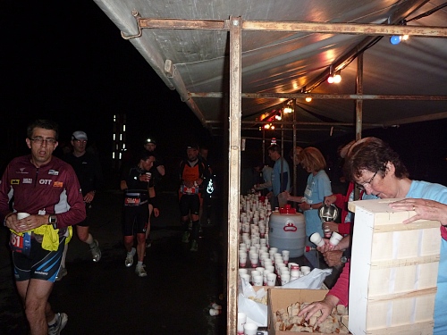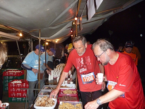 Ja, die individuelle Vorbereitung für den 100 km Lauf ist geheimnisvoll. Italiener bringen ihre eigenen Nudeln mit, Deutsche trinken ihr Bier.  Alle werkeln, schmieren, packen oder schlafen. Der Eine oder Andere hantiert mit geheimnisvollen Fläschchen und über all dem liegt eine unglaubliche Stille. Kein Lachen, keine Erzählungen von Heldentaten, nur konzentrierte Ruhe in einer mit dem Geruch von ätherischen Ölen und ungewaschenen Laufklamotten  geschwängerten Wartehalle.