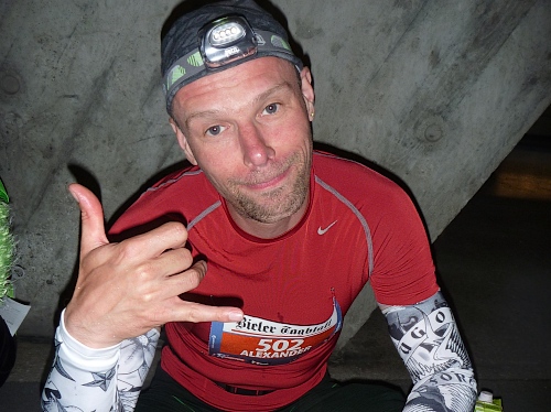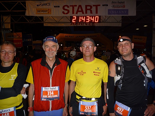Einer, der weiss, wie launig Biel in der Nacht der Nächte ist, das ist Karl Heinz Kobus. Seine erste Nacht in Biel hatte er mit 16! Es war sein erstes Mal, 100 km, aus dem Stand heraus, ohne Vorspiel, wenn  man die Bundesjugendspiele nicht einrechnet. Zum 30ten Mal ist er heute dabei.  Keule begleitet ihn, es könnte ja langweilig werden, nach so vielen Jahren.
