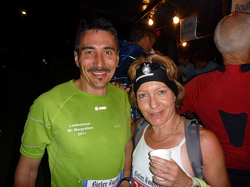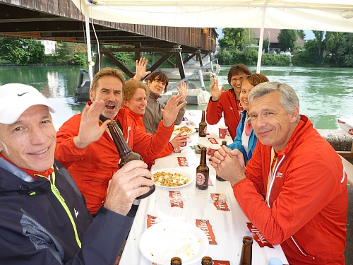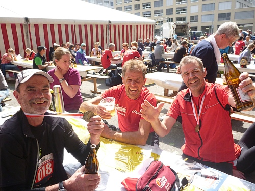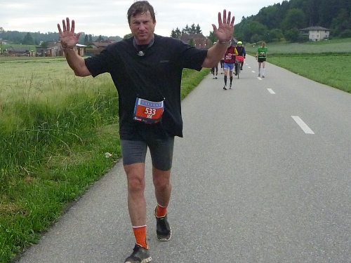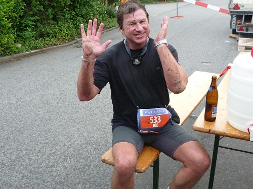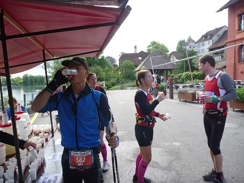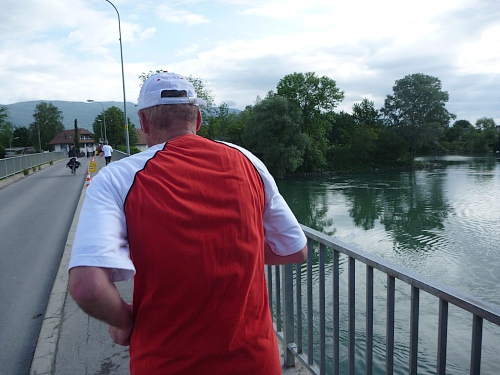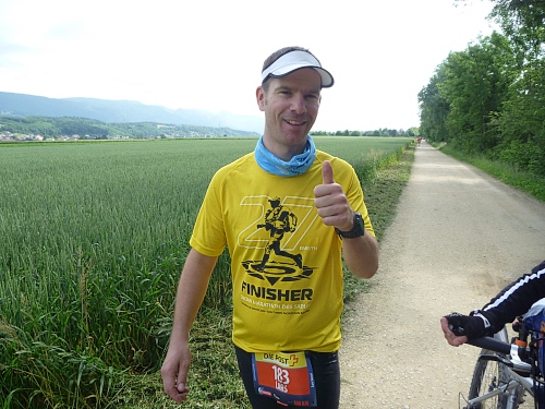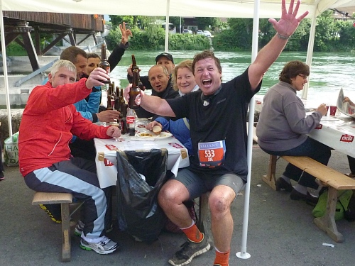 Der Vater ist 22mal mitgelaufen, der Onkel von dem anderen Mädel auch mal, und der andere war Streckenposten. Alle finden, dass wir absolute Helden sind: „Joe nur noch 53 km, du wirst es schaffen. Aber Zeit für noch ein Bierchen haste doch noch!“ Manches muss ich mir übersetzen lassen, aber erstmals höre ich in der Schweiz, dass die Deutschen verdammt cool sind. Und ich als Biertrinker noch viel cooler. Merkel, Euro und ewige Freundschaft - irgendwann muss ich weiter. 80 Plätze hat mich dieses Intermezzo gekostet. Verdammt, das war es mir wert.