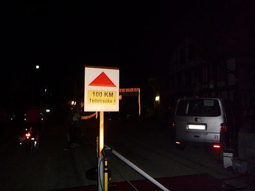 Oberramsern, Ziel des Marathons, nix los. Irgendwo danach dieses unheimliche Leuchten, als würde ein Raumschiff landen und genetisches Material erobern wollen. Aber es ist nur ein Kontrollpunkt.