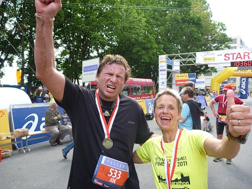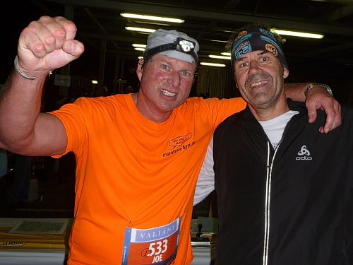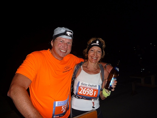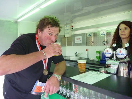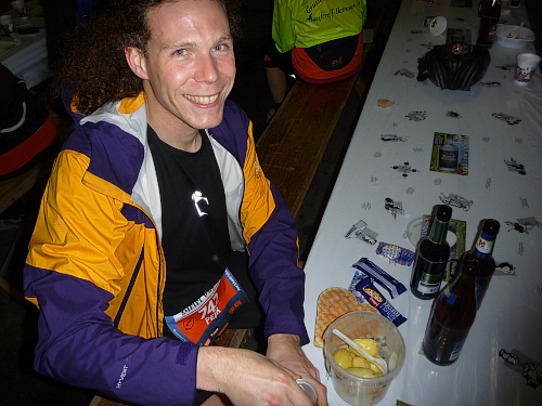 Ich bin absolut glücklich, meine körperlichen Probleme durch viel Geduld überwunden zu haben. Auch die Wirtin beim Heinecken-Stand hat viel Geduld und begrüßt mich nach 12:35 Stunden teilnahmslos und wenig begeistert.