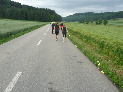 Km 75 - vor Bibern ist traditionell ein Leidensweg. Sieben Kilometer lang ist der ansteigende Weg in den frühen Morgenstunden, gerade der Zeitpunkt, wenn Daheimgebliebene sich vom verschwitzten Bett auf allen Vieren ins Badezimmer schleppen und vor dem Kloflockati ausrutschen.
