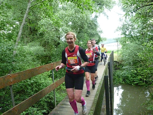Das Km 85-Schild scheint zu früh gewesen zu sein, denn das Km 90-Schild will sich heute nicht zeigen. An der Holzbrücke von Büren sitzen Staffettenläufer, wie hier die Staffelläufer genannt werden. Sie futtern Zwiebelbratkartoffeln. Voller Bewunderungen lauschen sie mir, als ich ihnen erkläre, dass ich Ultraläufer geworden bin, um meine schreckliche Kindheit zu verarbeiten. Als sie noch von meiner verdorbenen Jugend hören wollen, mache ich mich auf die letzten 13 Kilometer.