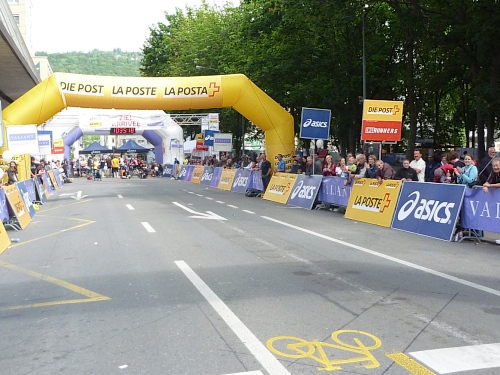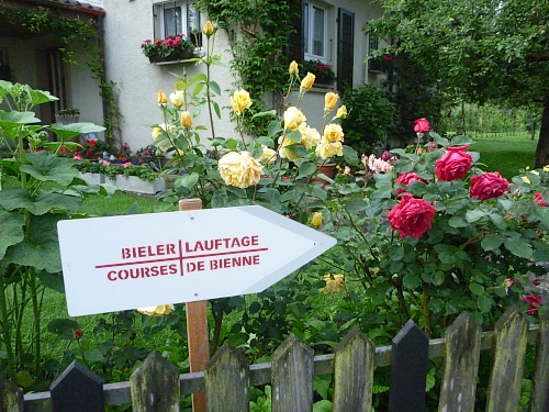 Ein Junge auf dem Trampolin stiehlt jedem Läufer die Show. Ist aber auch gerechtfertigt. Der hat so viel Spaß, der wird in wenigen Jahren hier gewinnen. Weniger Fahrradbegleitungen als sonst, die hier auf Erstläufer warten, aber nach 54 Jahren Biel muss doch wohl jeder gute Läufer schon hier gewesen sein.