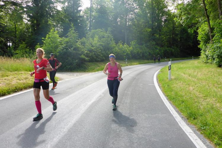 In den vielen Orten sind die Wirtshäuser die ganze Nacht geöffnet, doch keiner der Biertrinker, die auf den Bänken festkleben, rafft sich noch auf, um uns zu motivieren, nur Mütter mit ihren schlaflosen Kindern jubeln uns zu, preisen ihr „kostenloses“ Wasser an. Dann ist man wieder raus aus dem Ort und hört nur noch das „Tap-Tap-Tap“ der Läufer-Füße.
