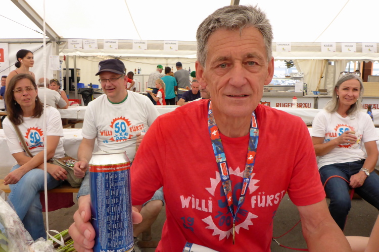 Im Interview sagte Willi Fürst, der heute seinen 50ten Bieler läuft, ihm kämen immer noch die Freudentränen, wenn er ins Ziel einläuft. Jedoch, als ich ihn überhole, ist sein Gesicht sehr teilnahmslos, so wie das Bild, das ich von ihm mache, als er später im Festzelt sitzt. Auch ich glänze nicht mit Freudentränen, dafür war die Nacht der Nächte bei idealen Bedingungen und glänzendem Vollmond für mich nicht optimal gelaufen. Das macht mich rammelig, ich komme nächste Jahr wieder nach Biel! Versprochen! 15:58 Stunden lasse ich nicht auf mir sitzen. Ich muss wieder meine alte Performance zeigen. Da muss mehr gehen, in der Nacht der Nächte! Notfalls ohne Vollmond.