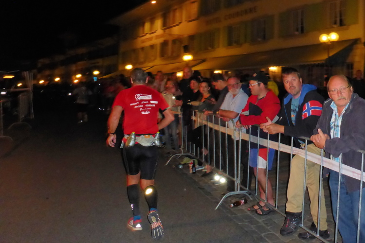 Die Zuschauer sind klasse, zum Glück falle ich zwischen all den Bergwanderern nicht auf. Ich muss Kräfte sparen. An den Verpflegungsstationen habe ich Konzentrationsschwierigkeiten, liegt am Trubel, dem Licht, der großen Auswahl und meiner Appetitlosigkeit.
