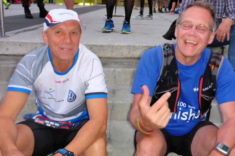 Für mich ist meine fünfte Teilnahme auch nicht die letzte, denn das Zeitlimit von 21 Stunden orientiert sich an den unterernährten Nordkoreanern. Der in Kenia lebende Ralf Klug versucht zum zweiten Mal, die legendären 100 Kilometer zu bewältigen- rückwärts. Er darf vor uns starten, nicht, weil er rückwärts läuft, sondern, weil er gemeinsam mit den Bieler Lauftagen die Stiftung Cerebral ins Leben gerufen hat, die Gelder für Schwerstbehinderte zur Verfügung stellt.