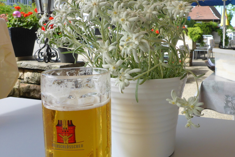Der 71jährige Klaus ist im Begriff, seinen ersten 100er zu finishen. Er schickt seine Radbegleitung vor, damit uns in Arch ein kühles Bier erwartet. Zunächst geht es aber weiter aufwärts, bis man auf den Flughafen von Soloturn blicken kann. Hier mit der grandiosen Weitsicht hat der „General“ (einige Leser wissen, wer gemeint ist) mir vor 5 Jahren beibringen wollen, wie man im Laufen pinkelt. Ein Radfahrer hat sich brutal hingelegt. Unten in Arch steht das Bier aufgereiht, daneben ein Glas Milch. Das ist nicht für mich.