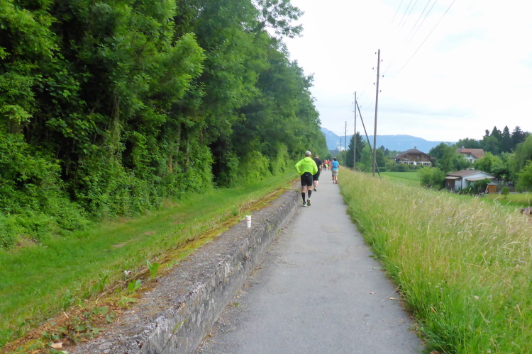 Nach 8 Kilometern sind wir aus der Stadt raus, es geht „steil“ den einst von der Aare geschaffenen Abhang hinauf. Insgesamt werden wir auf den 100 Kilometern nur 490 Höhenmeter zurücklegen, in diesem Jahr kommen vor Bibern nochmals 120 dazu. Ich werde es überleben!